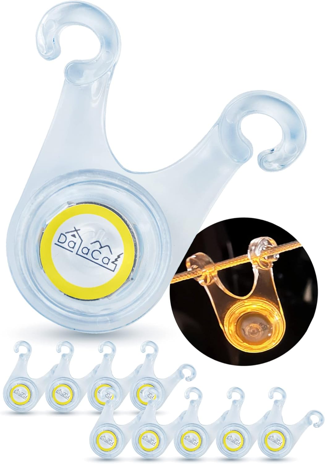 夜間のキャンプで最も危険な瞬間の一つが、暗闇の中でガイロープに足を引っかけて転倒することです。特にトイレに行く際や夜中に起きた時など、懐中電灯を持たずに歩き回ることも多く、見えないロープは本当に危険な存在となります。キャンプ歴25年の私も何度かヒヤッとした経験があり、安全対策の重要性を痛感してきました。そんな夜間の安全性を劇的に向上させてくれるのが、この「ロープ LED ライト 10個セット」です。