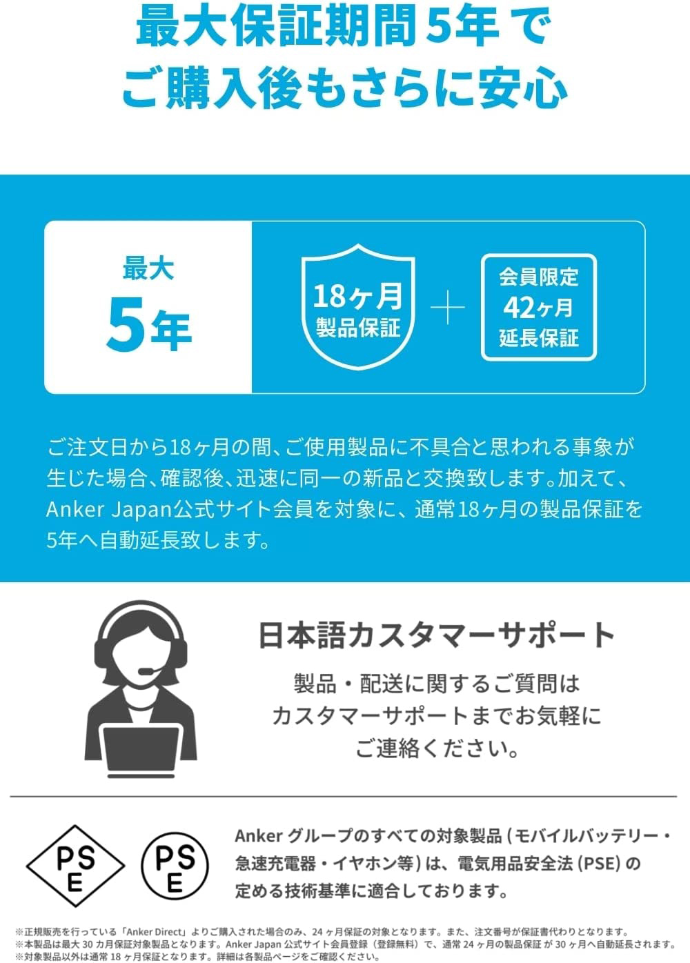 長期使用を前提としたサポート体制。Ankerの信頼ブランドとしての強みです。