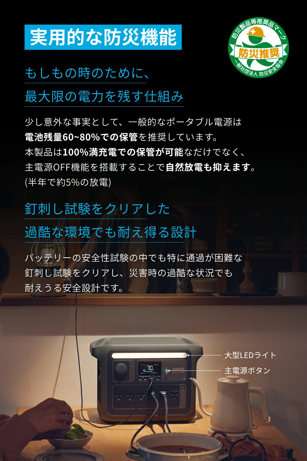 Anker Solix C10001024Wh1500W約58分11.3kg約12万円前後高速充電・高信頼・静音