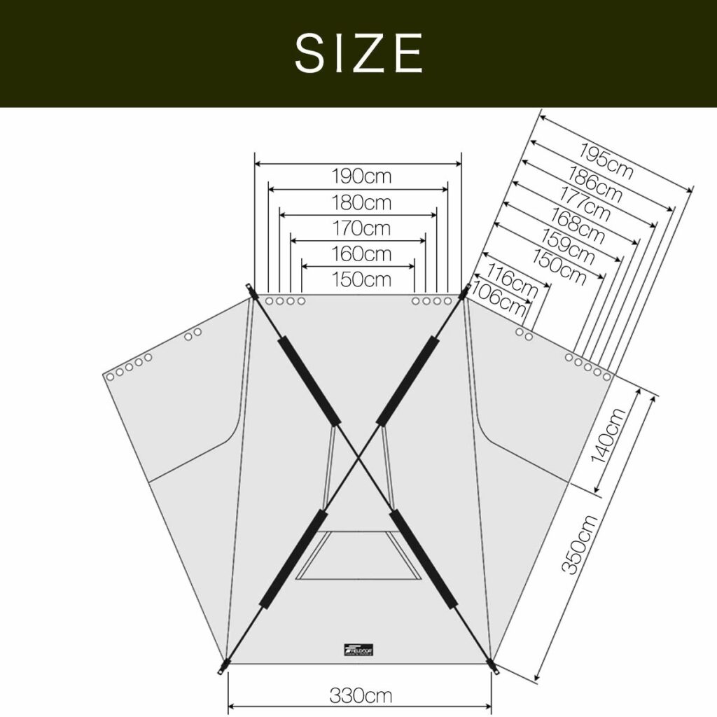 ・付属品:タープ×1、ポール×2、吸盤フック×4、ペグ×9、ロープ×2、収納バッグ、取扱説明書