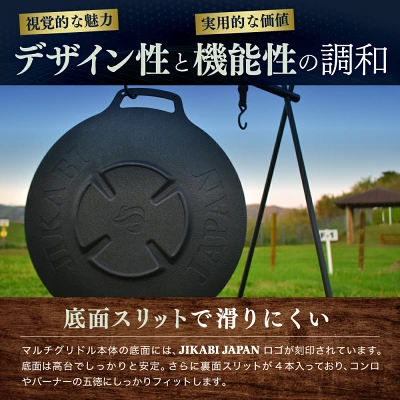 キャンプ飯をもっと美味しく、もっと手軽に楽しみたい。そんな人に人気なのが、JIKABI JAPAN マルチグリドル 33cm。数々の通販サイトで1位を獲得した話題の商品で、IHから焚き火まで全熱源に対応。専用蓋と「再コーティング無料券」が付属するのも大きな特徴です。