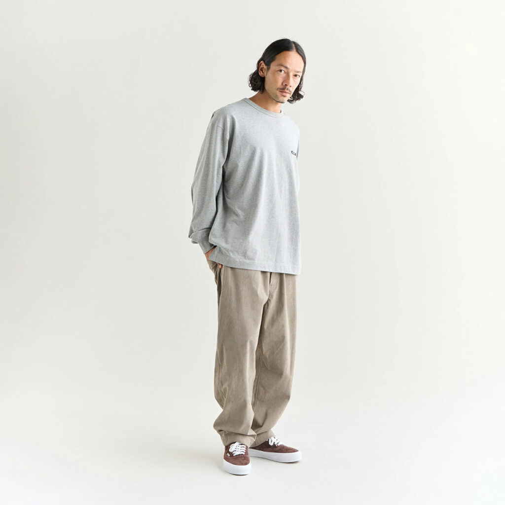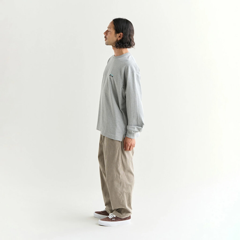 筆者(身長178cm・体重65kg)はMサイズを着用。着た瞬間に感じるのは、“軽くて柔らかい”という第一印象。ナンガといえばダウンのイメージが強いですが、このロンTはそのアウトドア魂を日常に落とし込んだような仕上がりです。特に気に入ったのは刺繍ロゴの上品さ。プリントではなく刺繍にすることで、着るたびに風合いが増し、洗濯を重ねても安っぽくならない。秋口は一枚で、冬はオーロラダウンの下に着る“定番の相棒”。街にもキャンプにも持っていきたくなる、万能な一枚です。