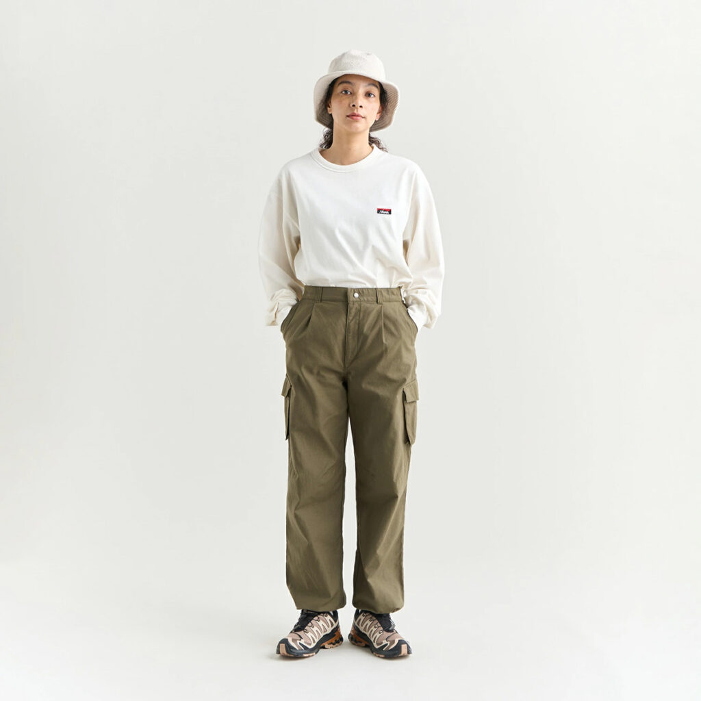 オーバーすぎず、程よい抜け感があるため、デニム・カーゴパンツ・ジョガーなど、どんなボトムスとも好相性。袖口のリブは柔らかく、手首に軽くフィットしてくれるので、アウトドアシーンでも動きやすい仕様です。