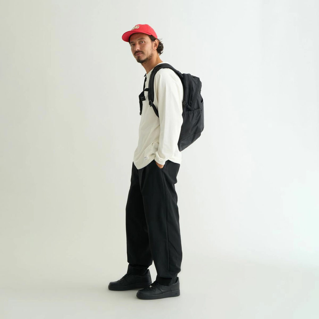容量30Lというサイズ感は、キャンプのサブバッグにも、街のデイリーユースにも最適。寝袋ブランドらしいしっかりした素材感ながら、街中でも悪目立ちしません。上部のファスナーポケットはアクセスしやすく、財布やスマホなどを入れておくのに便利。両サイドのポケットはペットボトルや折りたたみ傘がすっきり収まり、長物を固定するためのコンプレッションストラップも付属。どの角度から見ても“アウトドア×都会”の絶妙なバランスに仕上がっています。