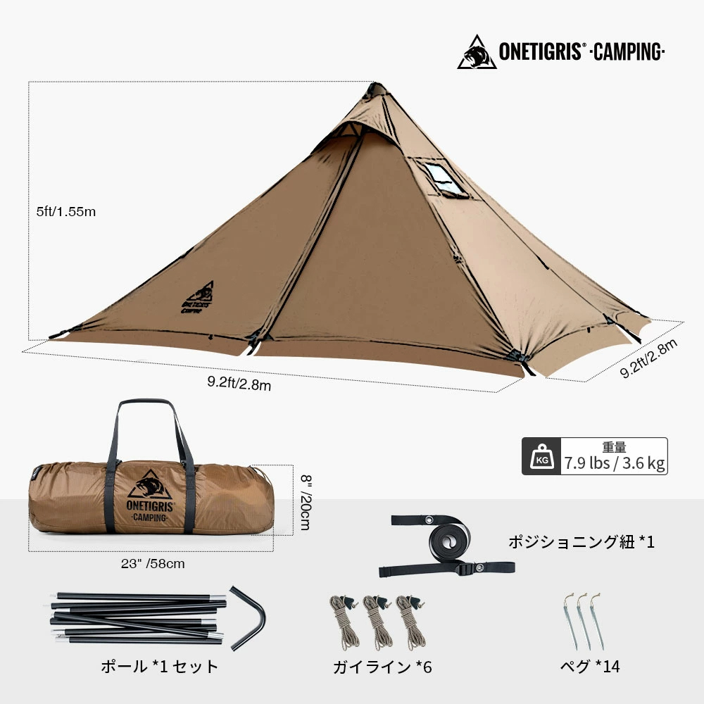 OneTigris APEX TRAILは、薪ストーブにも対応した本格派ソロテント。ワンポール構造の手軽さに、二又フレームの快適性を加えた新世代モデルです。耐水圧3000mmの高防水性を誇り、風雨・雪にも強い設計。初心者でも設営しやすく、コンパクトながら居住性抜群。まさに“ソロキャンプの自由と安全”を両立した一張りです。
