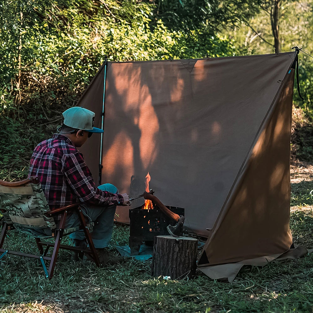 風を遮り、空間を広げる。焚き火もプライベートも快適に