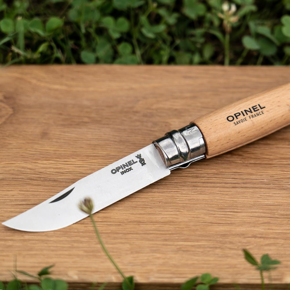 OPINEL ステンレススチール No.08は、デザイン、機能性、耐久性のすべてが高次元でまとまった折りたたみナイフ。錆びにくくお手入れも簡単、しかも手にしっくり馴染むブナハンドルの温もりが魅力。「初めての一本」としても、「長く使う一本」としても間違いのない選択肢です。シンプルなのに美しい──これこそが、100年以上愛され続ける理由です。