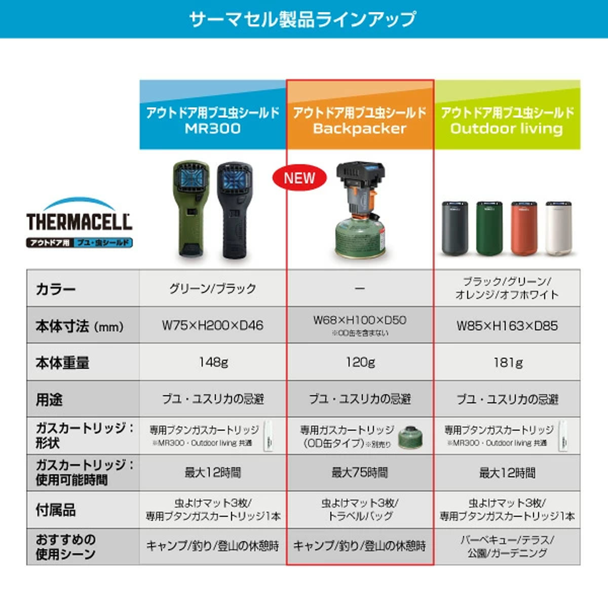 キャンプや登山の大敵といえば、ブユ・ブヨ。痒みや腫れが強く残るので、しっかりした虫対策が欠かせません。Thermacell Backpackerの取替えマットとガスカートリッジは、スプレーや肌への塗布なしで空間を守れる虫よけとして注目されています。