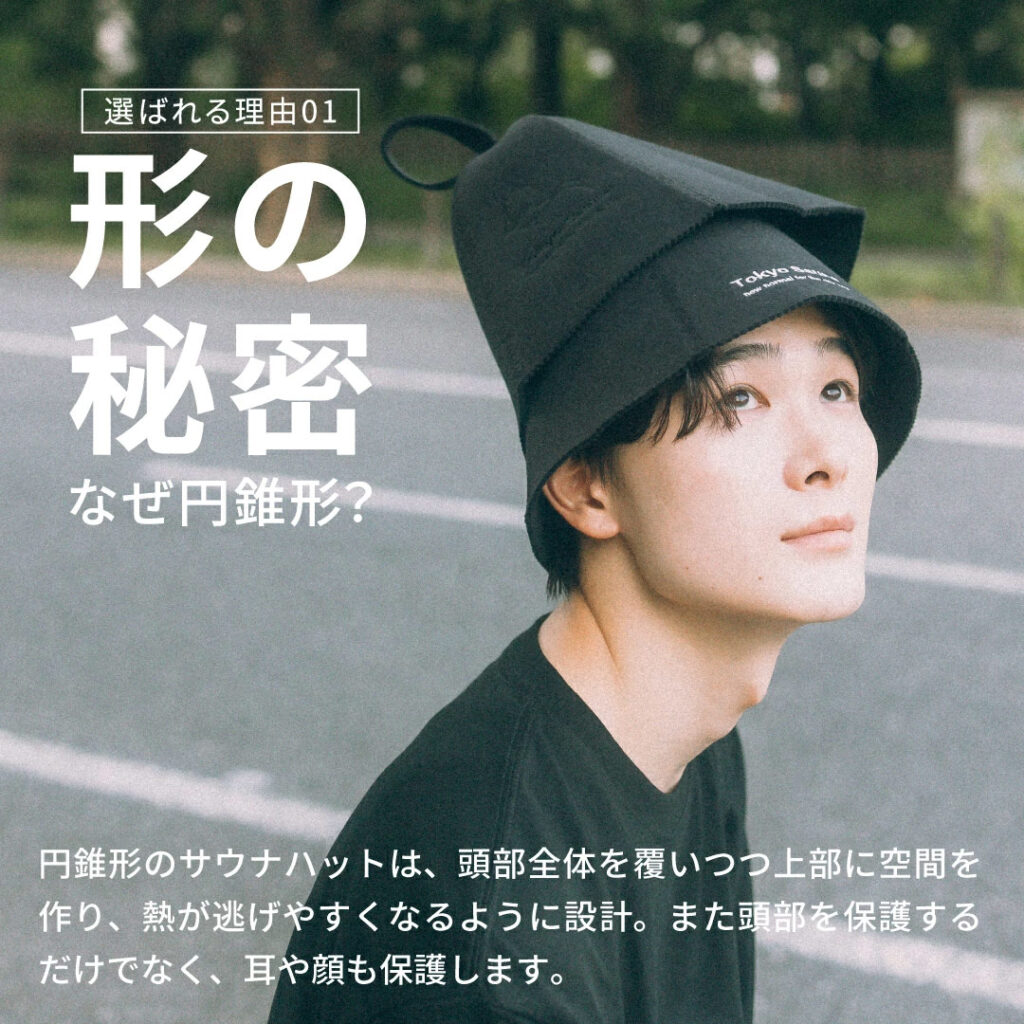 小さめのハットに比べて、耳までしっかり覆えることで“熱波(ロウリュ)”にも強く、熱風が当たっても快適。「外気浴まで頭が軽い」のはこの形状のおかげです。