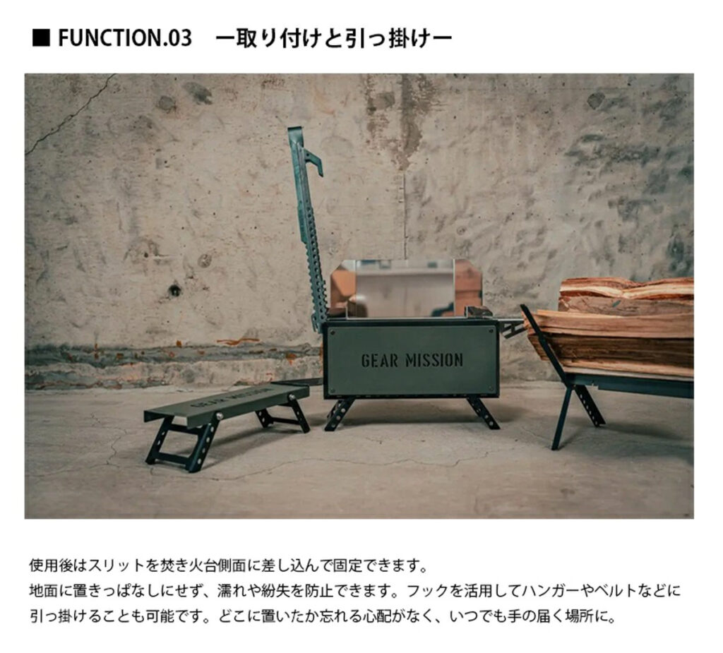 トヨトミのGEAR MISSIONシリーズは、「無骨×機能美」をテーマに展開されています。VG-GM1もその哲学を体現する1本。ストーブやランタンと統一感のあるデザインで、サイト全体に落ち着いたトーンを演出します。派手さよりも本物の質感を求めるキャンパーにこそ刺さる一本です。